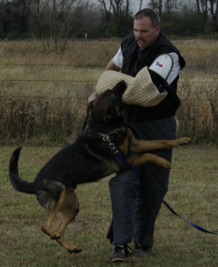 Santo comes from the German Zwinger vom Hilsblick. He is a powerful male and passes that power to his progeny. He has "A" normal hips. Santo has earned his Bh but has been retired from the sport following a catastrophic injury to his rear leg.